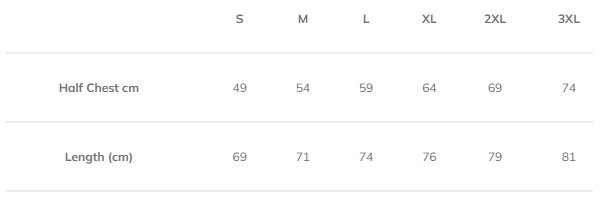 Sizes: S, M, L, XL, 2XL, 3XL